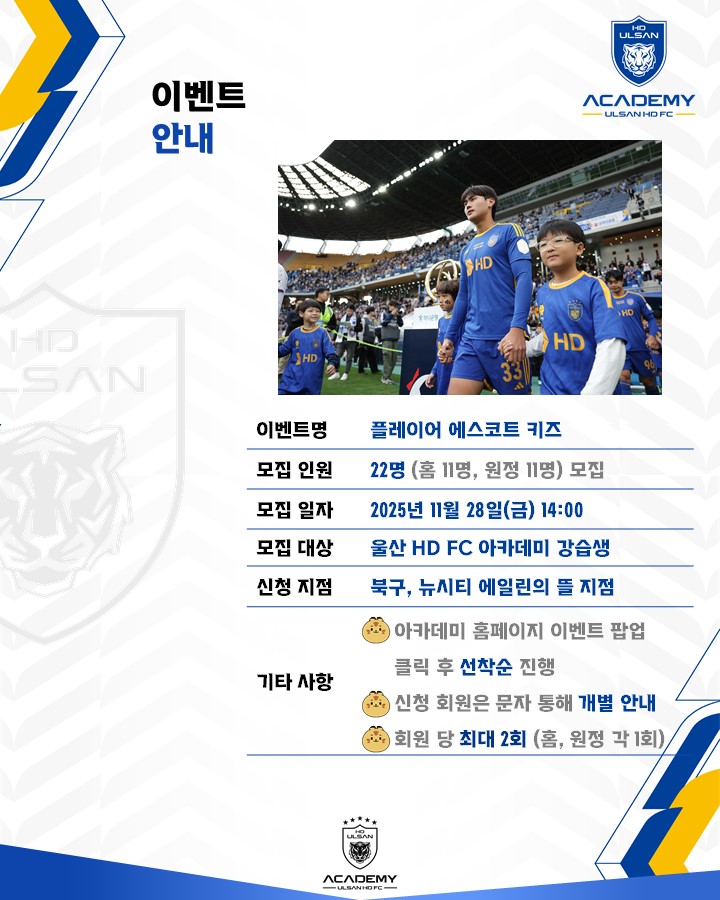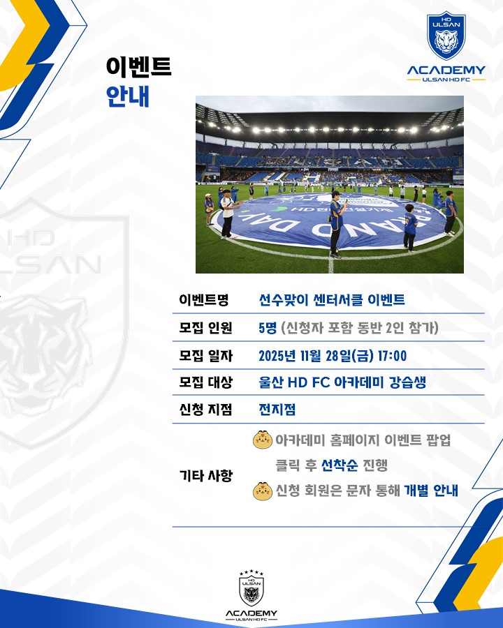 ✔ 신청 대상 : 울산 HD FC 아카데미 회원