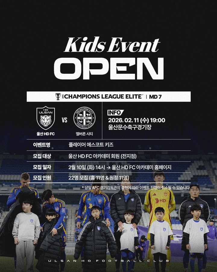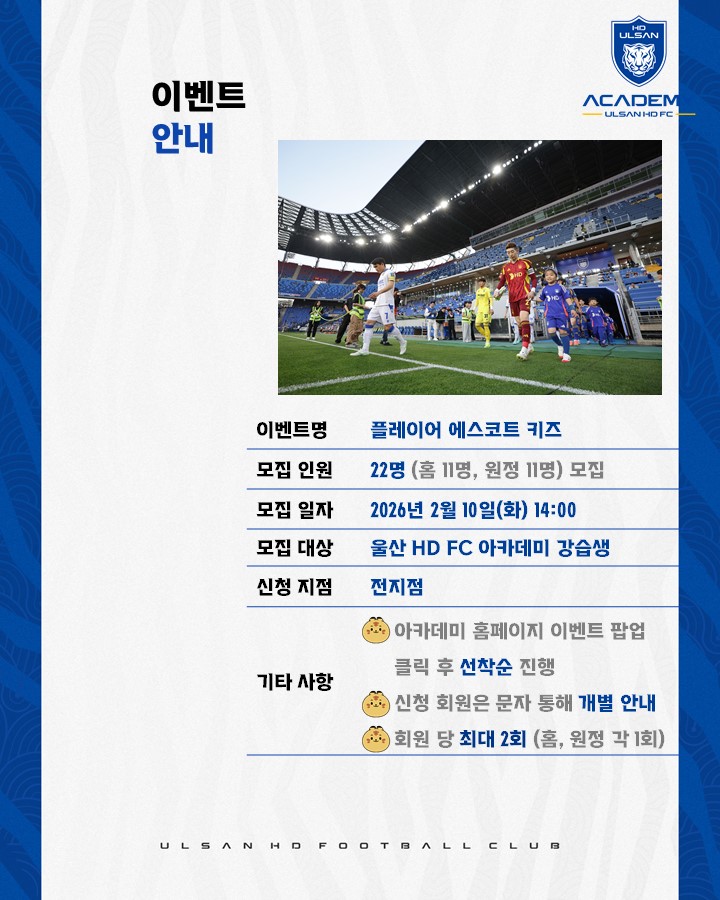 ✔ 신청 대상 : 울산 HD FC 아카데미 회원