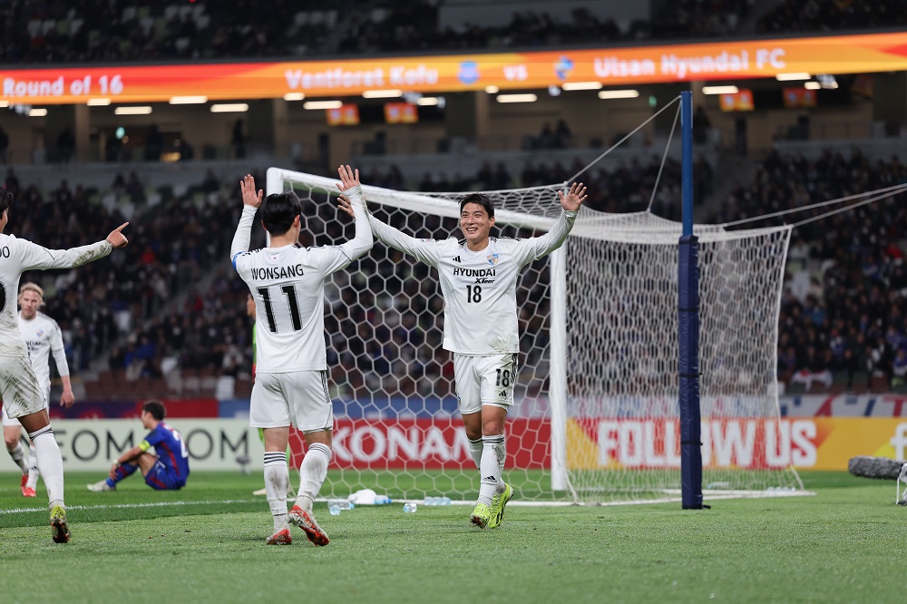 울산은 21일 오후 6시 일본 도쿄국립경기장에서 펼쳐진 고후와 2023/2024 아시아축구연맹(AFC) 챔피언스리그(ACL) 16강 2차전서 김지현의 선제골로 앞서갔으나 후반 43분 코너킥 상황에서 실점했다. 후반 추가시간 고삐를 당겼고, 엄원상의 크로스를 주민규가 마무리하며 2대1 짜릿한 승리를 맛 봤다. 1, 2차전 합계 5대1로 8강 진출에 성공했다. 8강 상대는 현대가 라이벌 전북현대로 정해졌다.