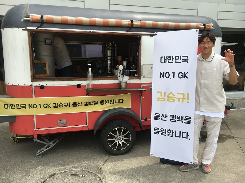 이전부터 김창수, 박동혁(현 아산 무궁화 감독), 이용(현 전북현대) 등 울산 출신 선수들을 꾸준하게 챙겨오던 이 팬은김승규의 복귀 소식을 듣고 이벤트를 기획했다.그리고 올 여름 휴가비 전액을 사용하여 연예인 팬들이 주로 보내는 커피차를 클럽하우스로 보냈다.