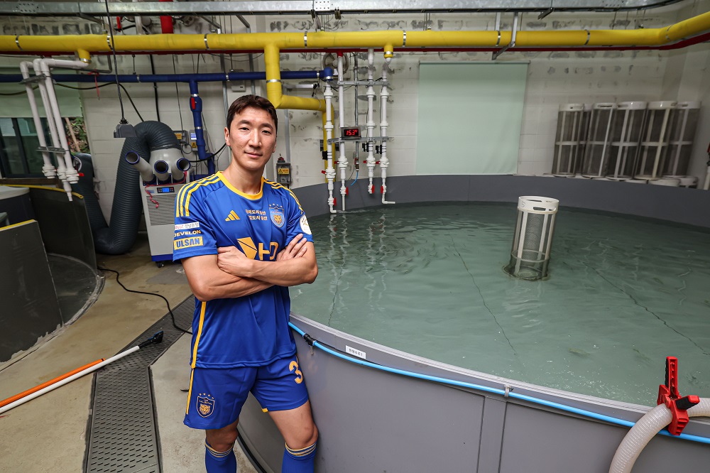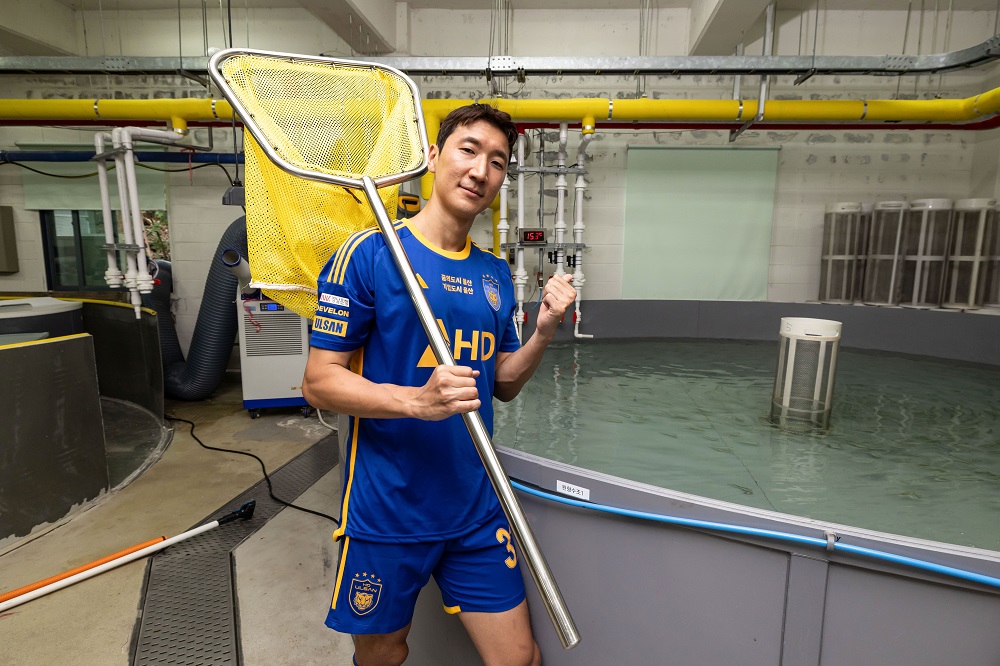 (회귀본능을 지닌 대표적인 생물 ‘연어’와 약 17년 만에 고향으로 돌아온 ‘정우영’을 연결 짓는 촬영. 울산광역시를 대표하는 랜드마크이자, 최대 자연환경인 태화강의 생태계를 설명하고 전시하는 ‘태화강 생태관’에서 오피셜 촬영을 진행. 생태관의 시설 중 연어 배양장에서 내년 2월 태화강으로 방생될 연어 치어들과 성체로 돌아온 정우영이 함께 촬영.)