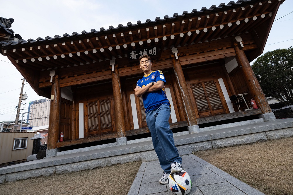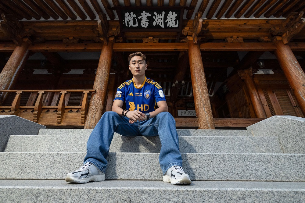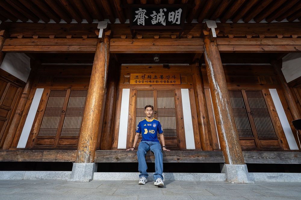 (공격과 수비, 온 그라운드를 휘저으며 경기 자체를 아우르는 이진현과 시내에 위치한 문화재로 전통과 도시의 미적 아름다움을 겸비한 용원서원의 모습을 한데 담는 오피셜 사진 촬영)