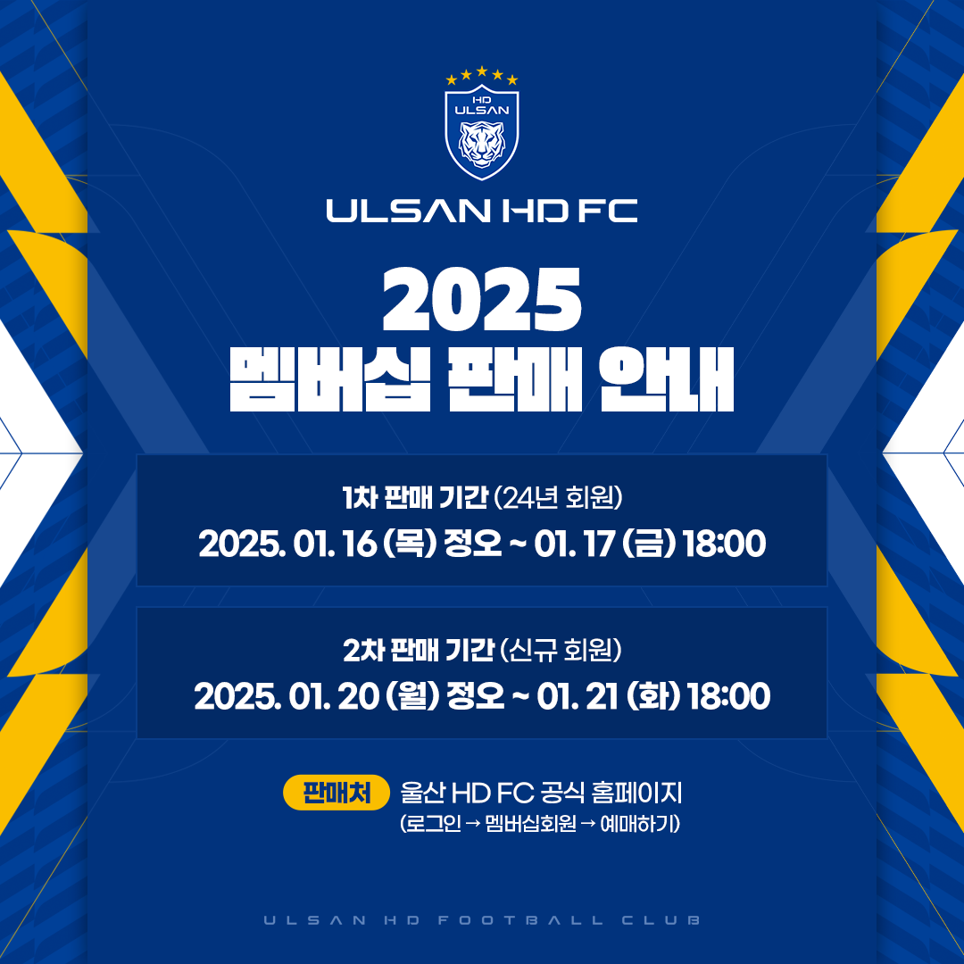 우선 예매 권한이 주어지는 울산의 멤버십은 2025시즌 울산의 홈인 문수축구경기장에서 열리는 K리그1 경기 예매에 사용할 수 있다.